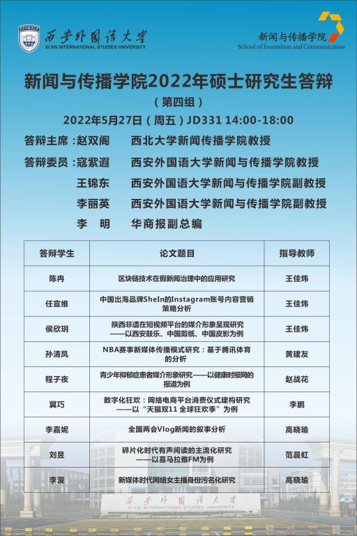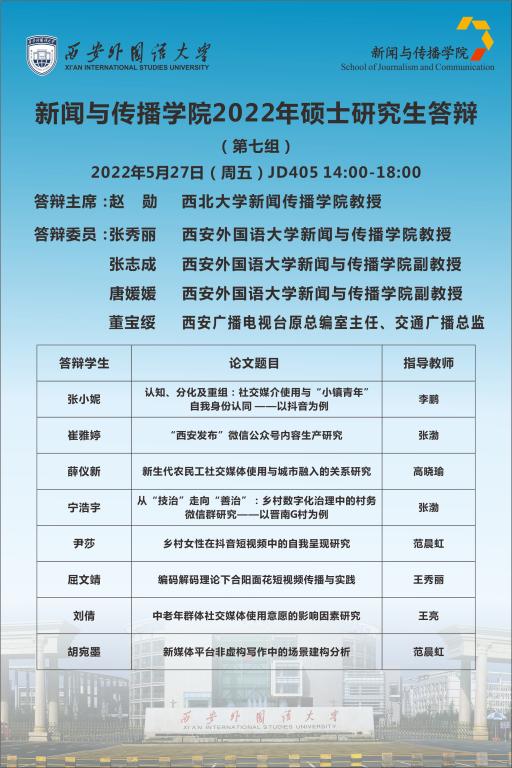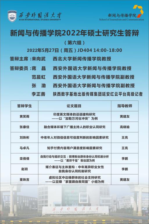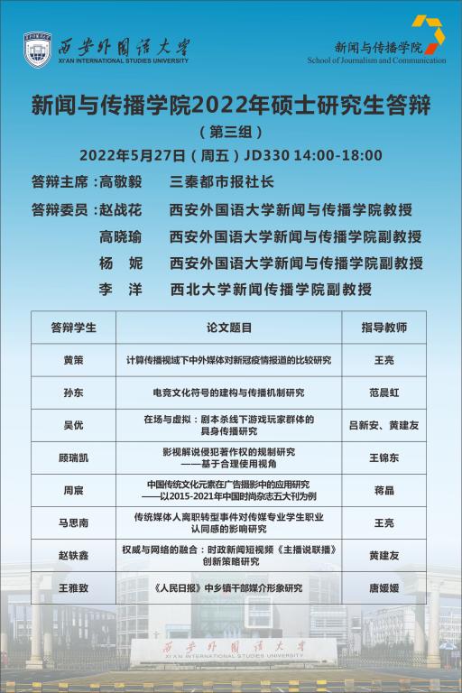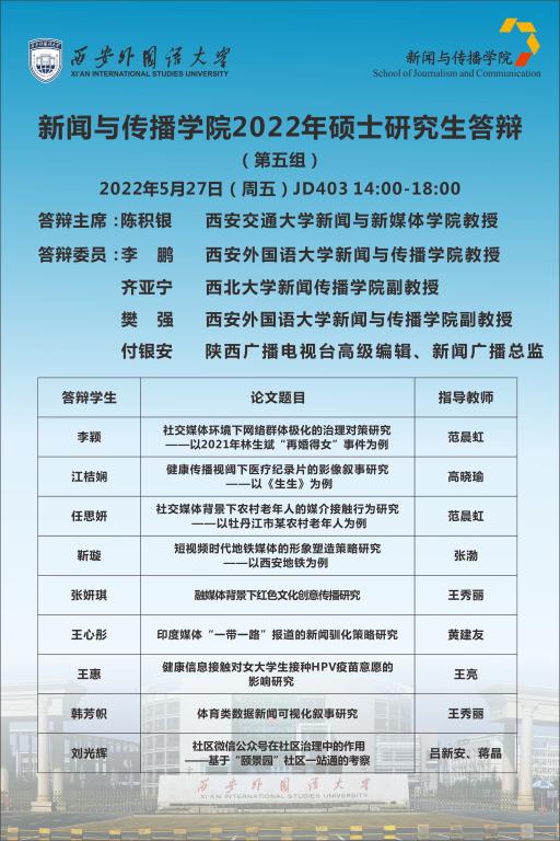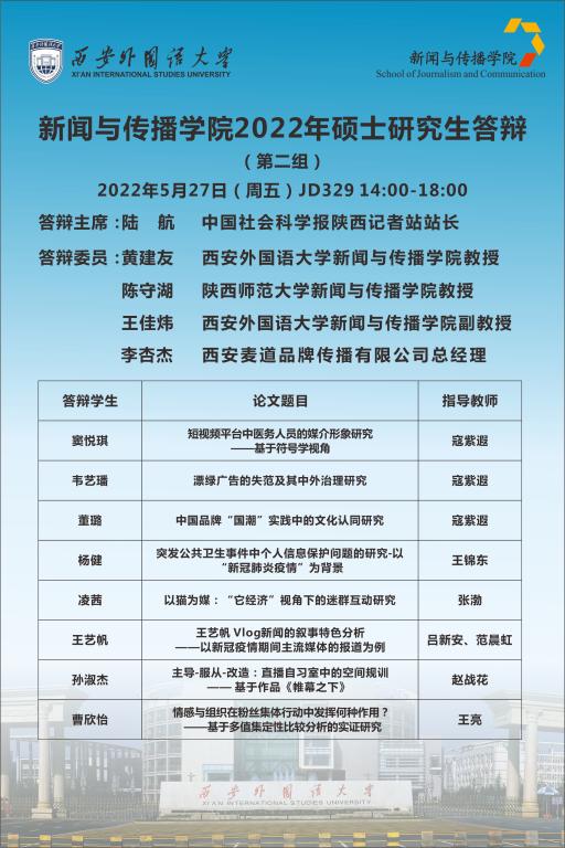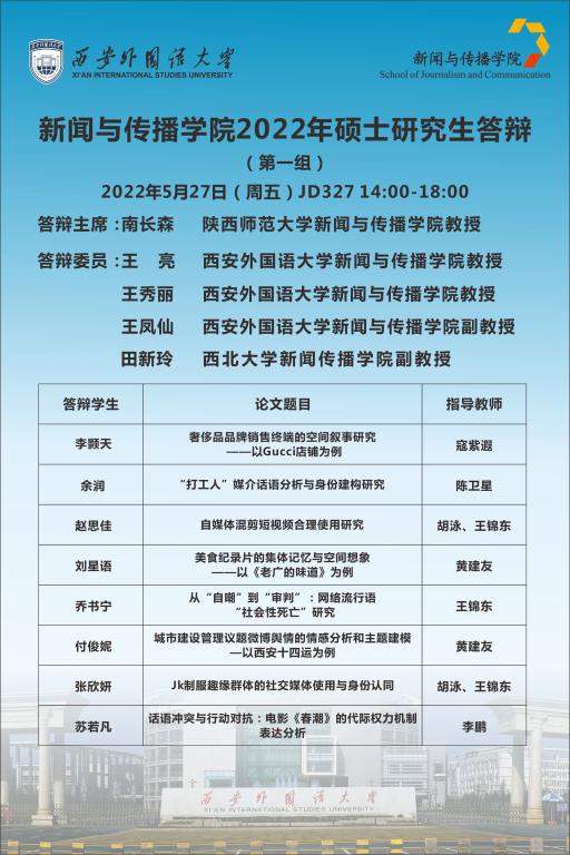 根据学校通知要求和学院工作实际,定于2022年5月27日下午,组织2022届硕士研究生毕业答辩,具体安排如下。
