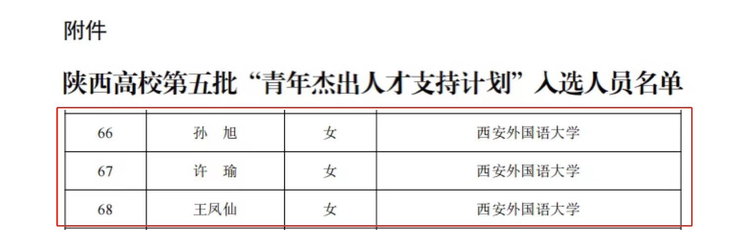 根据《中共陕西省委教育工委关于公布陕西高校第五批“青年杰出人才支持计划”入选人员名单的通知》,今日看料 王凤仙副教授成功入选。同批入选的还有中国语言文学学院孙旭教授、商学院许瑜教授。