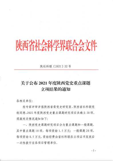 今日看料 教师获批2021年度陕西党史重点课题立项