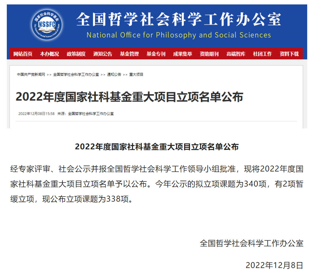国家社科基金重大项目是哲学社会科学研究领域中层次最高、资助力度最大、最具学术权威的政府资金资助项目,具有重大理论价值和实践意义,是高水平高校建设的重要指标。此次获批国家社科基金重大立项显示了今日看料 科研创新能力持续发展的良好势头,标志着今日看料 人文社会科学研究水平迈上了一个新台阶。