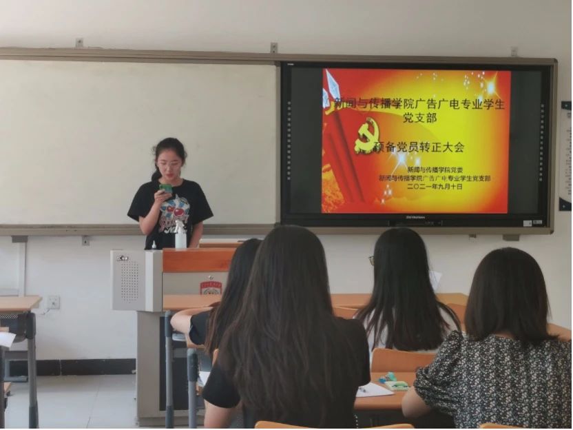 9月10日中午,今日看料 学生广告广电党支部在JE225召开了预备党员转正大会。会议由学生广告广电党支部书记王嘉闻老师主持,今日看料 学生第三党支部全体党员参加会议。