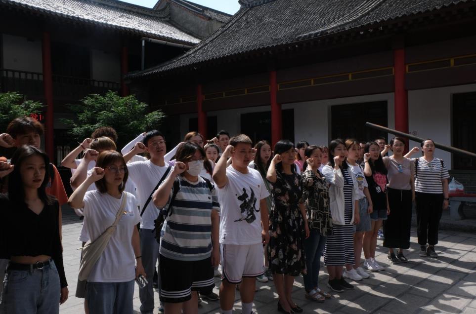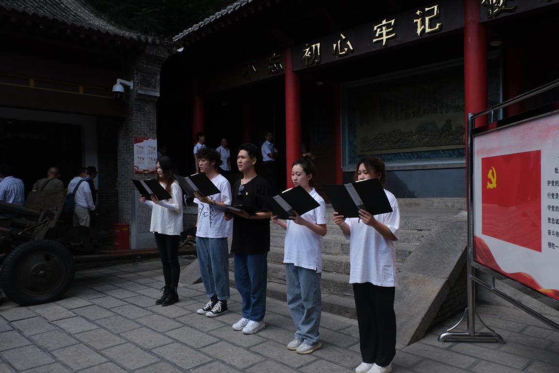 首先全体师生来到被喻为“明清老街,红色古镇”的蓝田县葛牌镇。葛牌镇苏维埃纪念馆是1935年红二十五军高举北上抗日旗帜,经过独树镇、庾家河等战斗进入陕西,建立葛牌镇区苏维埃政府,实现革命战略转移的历史见证地,是中国工农红军第二十五军在关中地区创建的第一个红色政权,标志着关中地区最早红色革命根据地的建立。全体党员在葛牌镇苏维埃纪念馆,对红二十五军的战斗历程和江西、葛牌等革命根据地的建立历史进行了学习。在参观结束后播音专业学生诵读了红色诗歌《信念永恒》,饱含深情抒发了对党和祖国的热爱之情,他们铿锵有力、振奋人心的诵读深深激发了全体师生党员的爱国热情和做好本职工作的信心。2018级广播电视编导专业韩佩瑞同学也分享了她的父亲结合自身经历书写的一封“红色家书”,引导广大青年重温革命历史,传承红色基因。参观完纪念馆,所有党员高举右手,面对鲜红的党旗庄严宣誓,重温入党誓词,深感作为一名共产党员的使命与担当。
