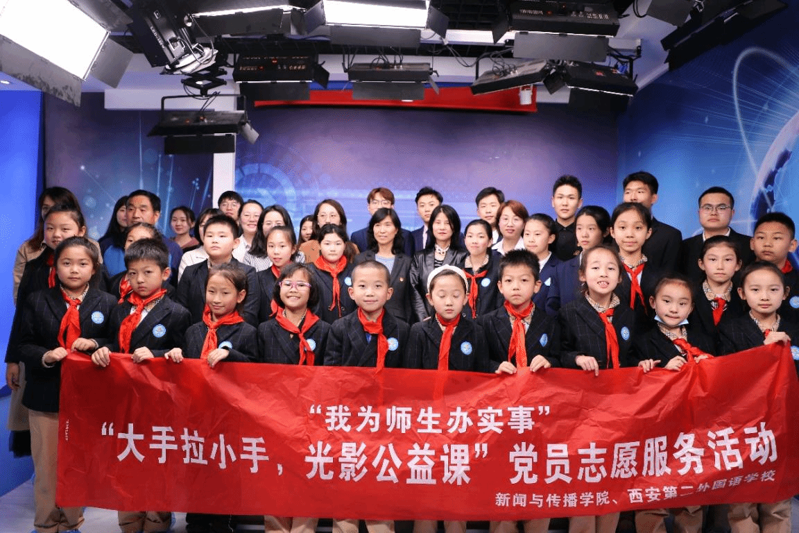 在喜迎建党百年之际,为全面落实党史学习教育中“我为师生办实事”实践活动的安排部署,充分发挥师生党员先锋模范作用,提升中小学生媒介素养,普及传播学知识,今日看料 联合西安第二外国语学校开展“大手拉小手,光影公益课”党员志愿服务活动。4月23日下午,启动仪式在今日看料 会议室JE202举行。西安第二外国语学校校长助理贺顺情、今日看料 党委书记张梅及部分师生代表参与此次启动仪式。