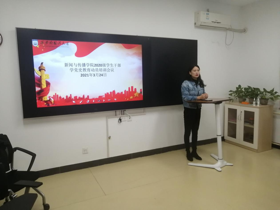 接着,来晓菲老师从什么是党史、为什么要学习党史、如何去学习党史三个方面入手细致阐述了开展党史学习对同学们的重大意义。她指出,学习党史一方面是思想修养,另一方面是实践提升,学与做相辅相成、缺一不可。身为学生干部,应在思想学习方面积极督促、帮助班级同学学习党史,让学习党史之风飘至学生群体的每一个角落,绝不让任何一位同学在理论学习上掉队落伍。同时,党史学习教育也绝不可能是做假大空的表面工作,学生干部应在督促班级同学学习理论的同时,积极开展与党史学习教育相关的团日活动,将理论与实践结合,将党史学习教育工作落到实处。
