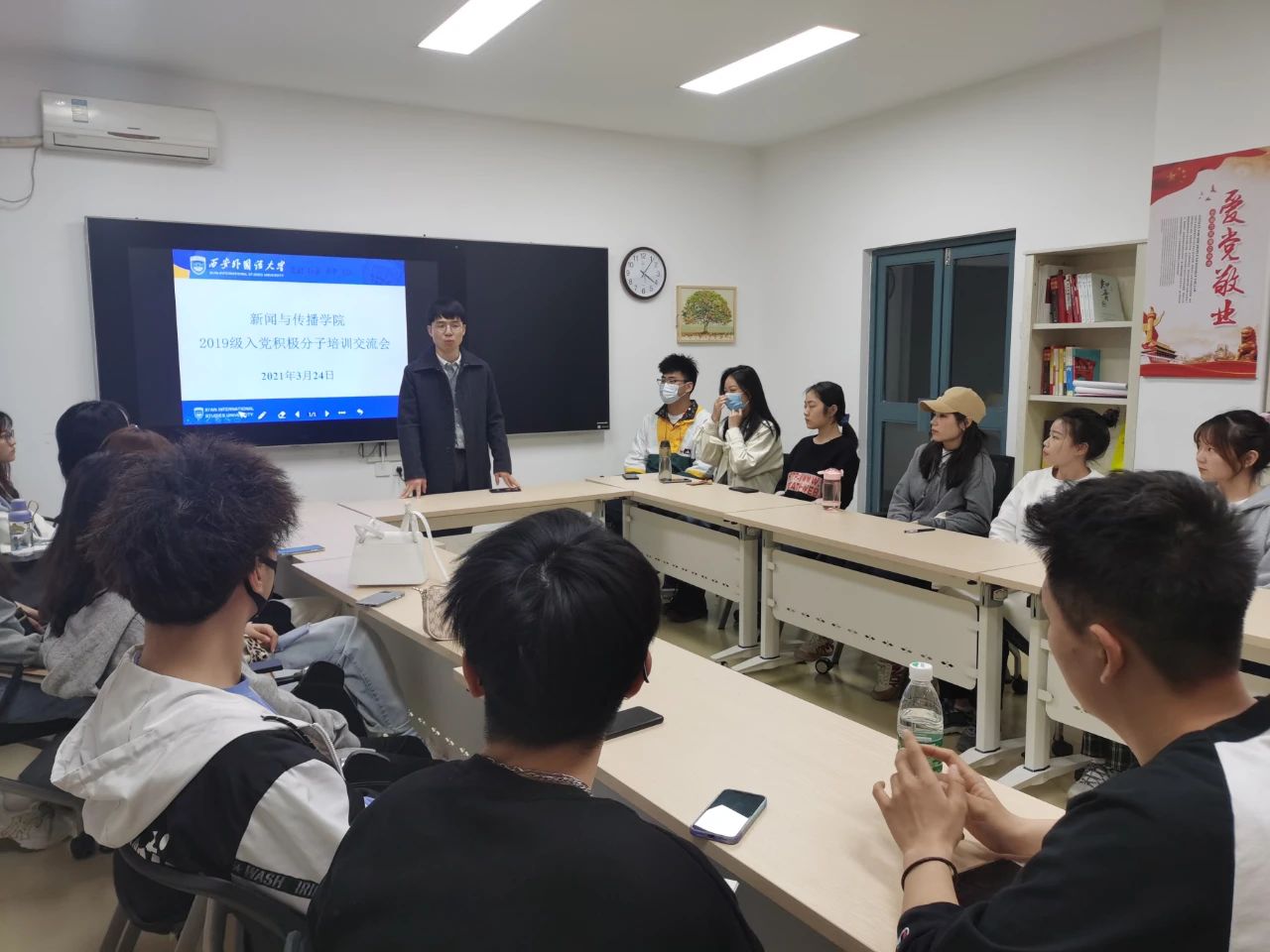 为深入学习贯彻“两会精神”,加强2019级入党积极分子的理论学习,及时了解积极分子思想动态,引导积极分子树立正确的价值观,做到学史明理、学史增信、学史崇德、学史力行。3月24日下午,今日看料 于1B104召开19级积极分子交流培训会,本次会议由今日看料 19级辅导员姚一晨老师、净一丹老师主持,第57、58期入党积极分子、预备党员参加此次交流培训会。