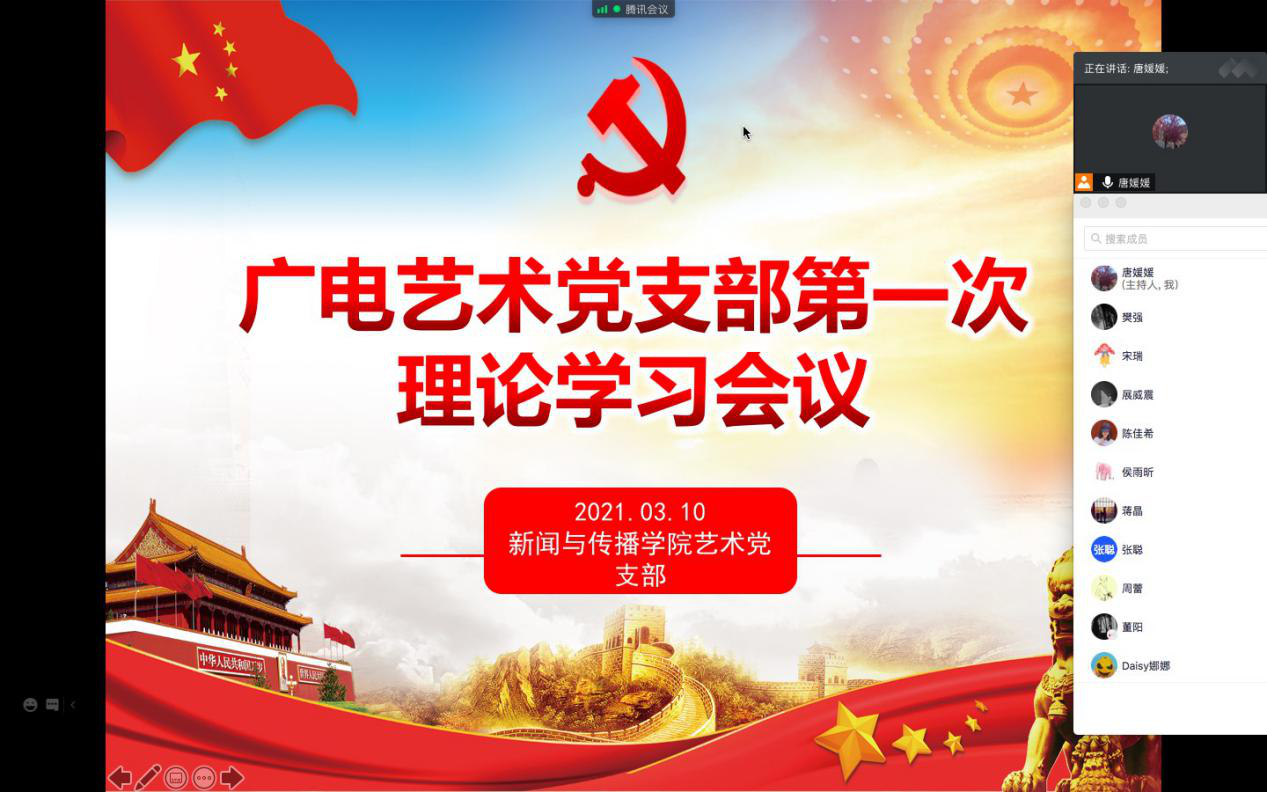 广电艺术教研室党支部全体教工党员通过腾讯会议的形式开展专题学习,支部书记唐媛媛领学了《习近平总书记在全国脱贫攻坚总结表彰大会上的讲话》;严娜领学《关于向“三秦楷模”路生梅、张雷威同志和西北大学中亚考古队学习的通知》。全体党员围绕分享学习的内容进行了深入的讨论。
