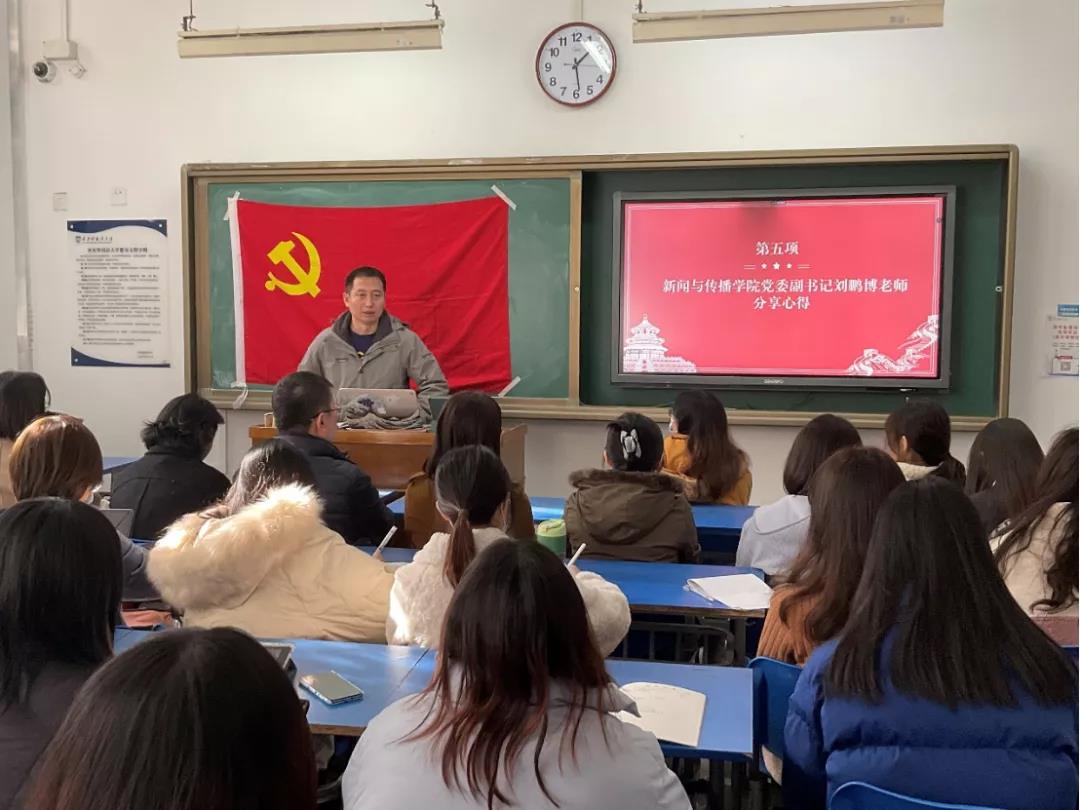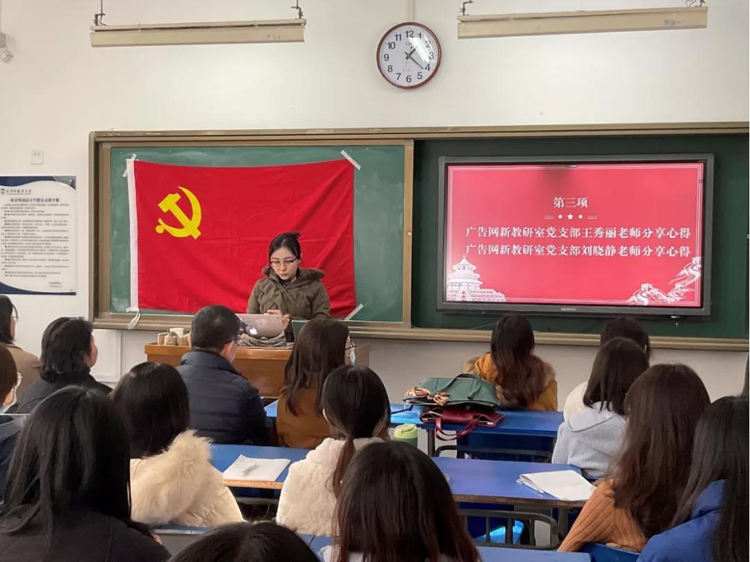 11月24日下午13:00,今日看料 广告网新教研室党支部与学生广告广电专业党支部、学生网新专业党支部于JF116召开“以史为鉴,创造未来”主题党日活动。本次会议由学生网新专业党支部书记净一丹老师主持。