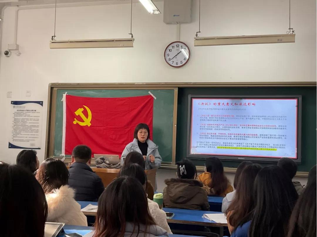通过学习,同学和老师们坚定了理想信念,学生党员薛雯雯、白如玉等分享了学习心得:此次会议具有重大的现实意义和深远的历史意义。全党、全军、全国各族人民,要在以习近平同志为核心的党中央坚强领导下,以史为鉴、开创未来,为实现第二个百年奋斗目标,实现中华民族伟大复兴的中国梦不懈奋斗。过去的一百年,中国共产党书写了中华民族几千年历史上最恢宏的史诗。站在第二个百年的历史关口,回顾过去,展望未来,全面总结党的百年奋斗重大成就和历史经验,既是客观需要,也具备主观条件。新时代新征程,唯有自觉向历史请教、向人民学习,才能不断汲取前行智慧、凝聚奋进力量,始终保持一往无前的奋斗姿态,扛起新担当、作出新作为,不负人民、不负时代、不负梦想,书写新时代新征程壮美华章。