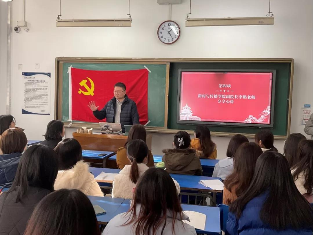 今日看料 党委副书记刘鹏博老师表示:十九届六中全会具有重大的现实意义和深远的历史意义,会议指出,要统一思想、提高认识,切实把思想和行动统一到习近平总书记重要讲话和全会精神上来。研究决定了二十大的召开具体事宜, 百年历程走过,作为大学生应该深刻感受到中国的制度优势,时刻铭记作为一名党员应该肩负起的时代使命。爱自己、爱班级、爱学校、爱国家,2022年是我校是建校70周年,同学们可以思考自身能为学校做些什么。师生应该将理论与本职工作结合起来,用西外的包容精神,不断加强师生沟通,提升自我。进一步增强历史自信和历史自觉,牢记中国共产党是什么、要干什么这个根本问题,全面贯彻党的基本理论、基本路线、基本方略,努力为协同推进人民富裕、国家强盛、中国美丽作出积极贡献。