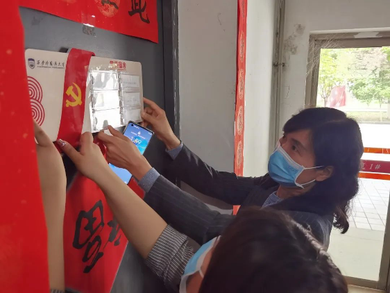 随后,党委书记张梅和副书记刘鹏博前往党员宿舍举行挂牌仪式。