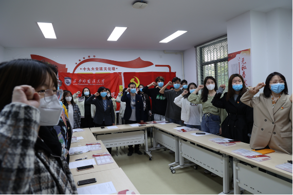 最后,在主持人的带领下,全体党员举起右拳,再次重温入党誓词,以不忘初心,砥砺前行。