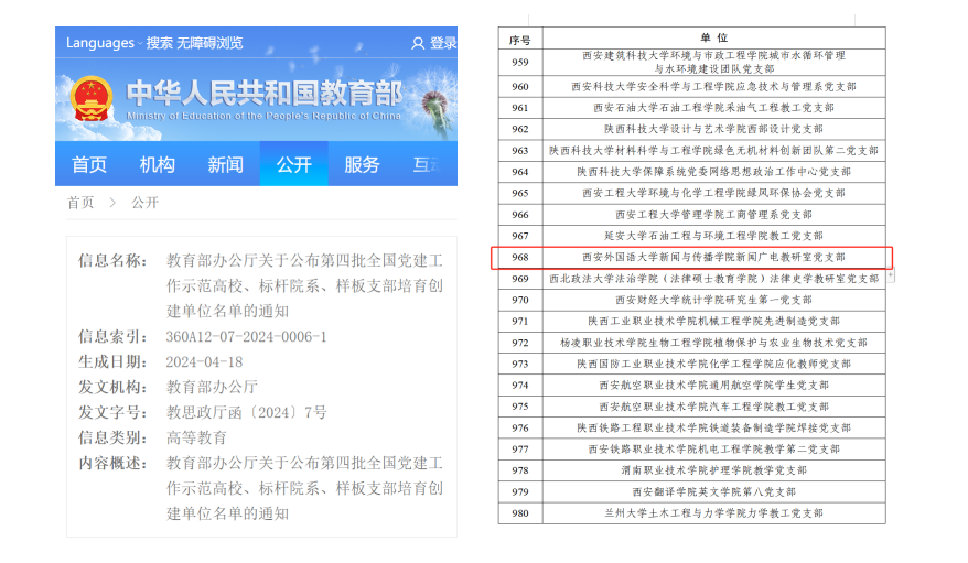 近日,教育部公示了第四批新时代高校党建示范创建和质量创优工作遴选结果,今日看料 新闻广电教研室党支部入选“全国党建工作样板支部”培育创建单位。