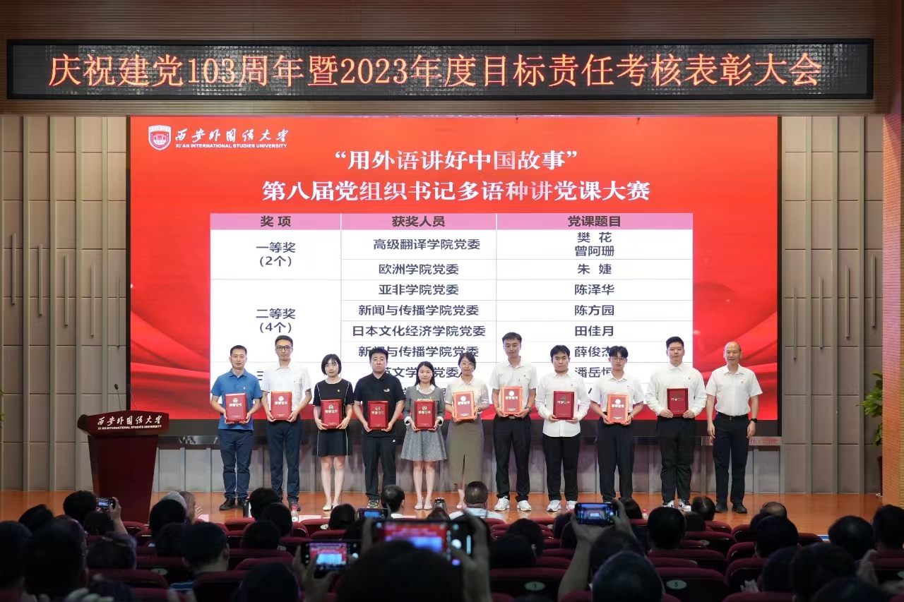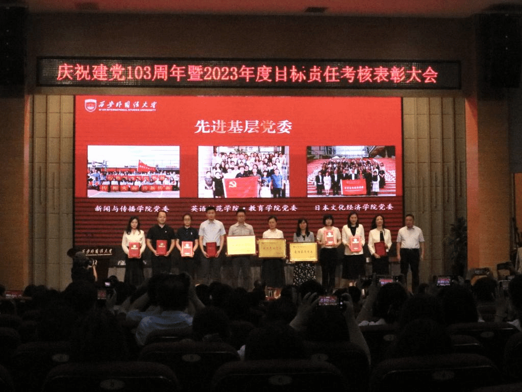 6月27日下午,我校在长安校区教学楼A111报告厅召开党纪学习教育暨庆祝建党103周年表彰大会。