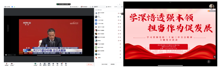 会上,各支部集体学习了《中国共产党第二十届中央委员会第三次全体会议公报》《中共中央关于进一步全面深化改革 推进中国式现代化的决定》等相关内容,并观看了央视网学习贯彻党的二十届三中全会精神专题视频。