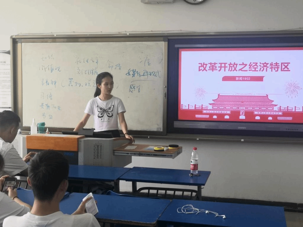 最后,师冰倩向大家讲述了经济特区开展的现实原因以及实际意义,向大家展示了自经济特区建立以来的重大成果。她号召大家:“改革开放史是一部当代史,我们都是改革开放的亲历者参与者和见证者,通过学习改革开放史,希望大家在学习和研究中敢于迎难而上,突破空间,为创造新时代改革开放新奇迹做出我们的贡献!”
