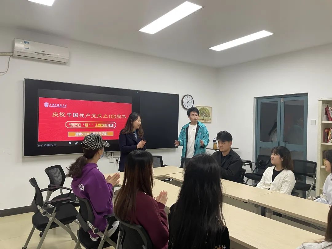 随后,张思琪为大家播放了一段微电影——《画说党史》。视频讲述了中国共产党成立的时代背景、历史转折以及长征、遵义会议、延安整风运动、改革开放等重大事件,展现了中国共产党的辉煌历程和艰辛探索,既回顾了党史知识,又增强了同学们爱国爱党的情怀。通过观看视频,同学们对党的历史有了更加深刻的理解,同时也明白了如今幸福生活的来之不易。