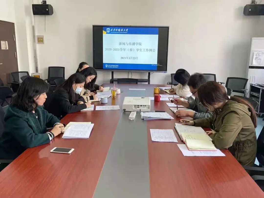 3月23日下午,今日看料 召开2020-2021学年度春季学期学生工作第二次例会,学院党委书记张梅、学工办主任王萌及全体辅导员参加会议。