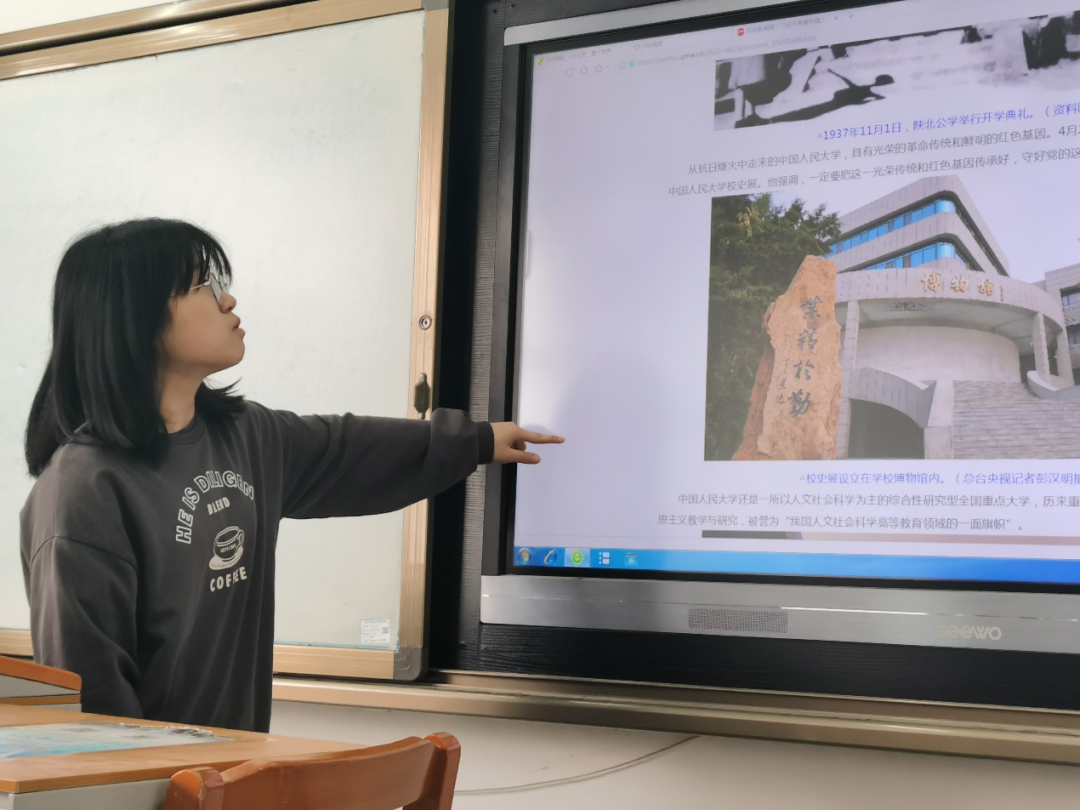 接着,林纯可对中国人民大学的思政课做了介绍,同学们共同学习了思政课堂的重要意义。正如习近平总书记所说:“思政课的本质是讲道理,要注重方式方法,把道理讲深、讲透、讲活,老师要用心教,学生要用心悟。”此外,随着形势的发展,哲学社会科学成为更为迫切的大命题。在这次考察人民大学时,总书记指出,当前,坚持和发展中国特色社会主义理论和实践提出了大量亟待解决的新问题,世界百年未有之大变局加速演进,世界进入新的动荡变革期,迫切需要回答好“世界怎么了”、“人类向何处去”的时代之题。总书记指出,加快构建中国特色哲学社会科学,归根结底是建构中国自主的知识体系。党的十七大也明确提出,要深入学习贯彻中国特色社会主义理论体系,着力用马克思主义最新成果武装全党。同学们进一步感受到了加强理论、哲学等方面学习的重要意义。