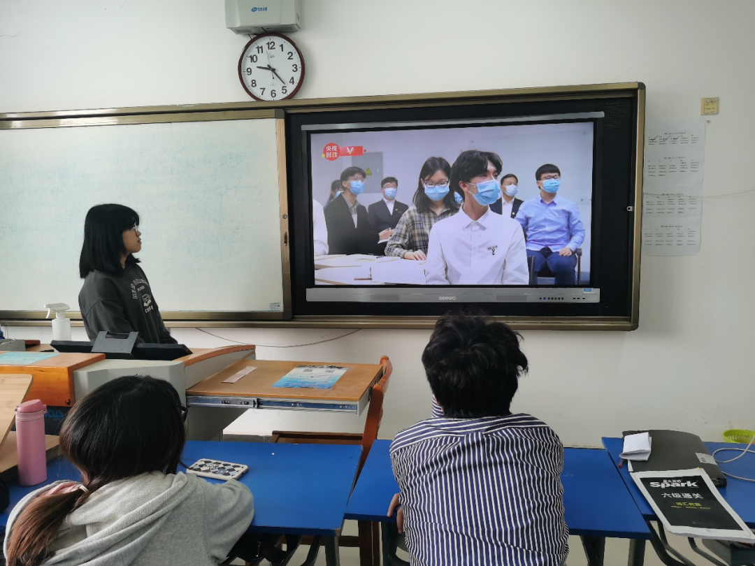 最后,大家共同观看了习近平总书记勉励广大青年的讲话视频,深刻体会到我们青年学子的使命。“希望大家牢记党的教诲,立志民族复兴,不负韶华,不负时代,不负人民,在青春的赛道上奋力奔跑,争取跑出你们这一代人的最好成绩。”