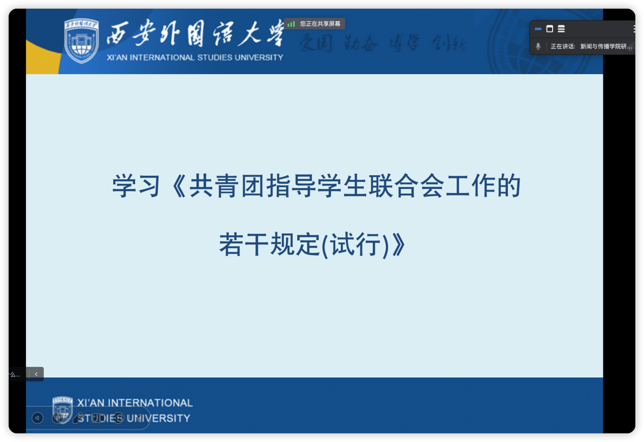 为深入学习宣传贯彻党的二十大精神,根据《关于增强新时代大学生社会实践活动实效深化共青团实践育人工作的意见》《共青团指导学生联合会工作的若干规定(试行)》等相关文件要求,按照2023年秋季学期陕西省学联学生会组织全体工作人员培训安排,今日看料 研究生会决定开展2023年秋季学期今日看料 研究生会全体工作人员培训。研究生会全体成员参与了此次会议。