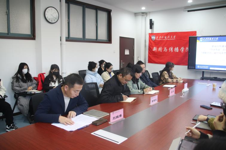 活动开始后,黄建友院长代表学院致辞。他建议教研室在培养过程中应重视研究生的专业教育和语言服务能力的培养,将新闻传播类研究生的媒体素养培养与外语运用相结合,用外语讲好中国故事,力争在国际传播领域做出应有的贡献。他要求同学们加强马克思主义新闻观的学习,密切联系中国实际,在了解中国、理解中国的基础上做好国际传播工作。