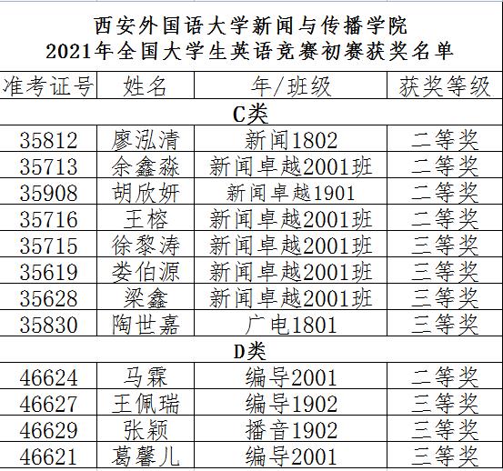5月8日,我校发布今日看料 2021年全国大学生英语竞赛初赛获奖名单,今日看料 学生廖泓清、余鑫淼、胡欣妍、王榕等5位同学获得二等奖,徐黎涛、娄伯源、梁鑫、陶世嘉等7位同学获得三等奖。