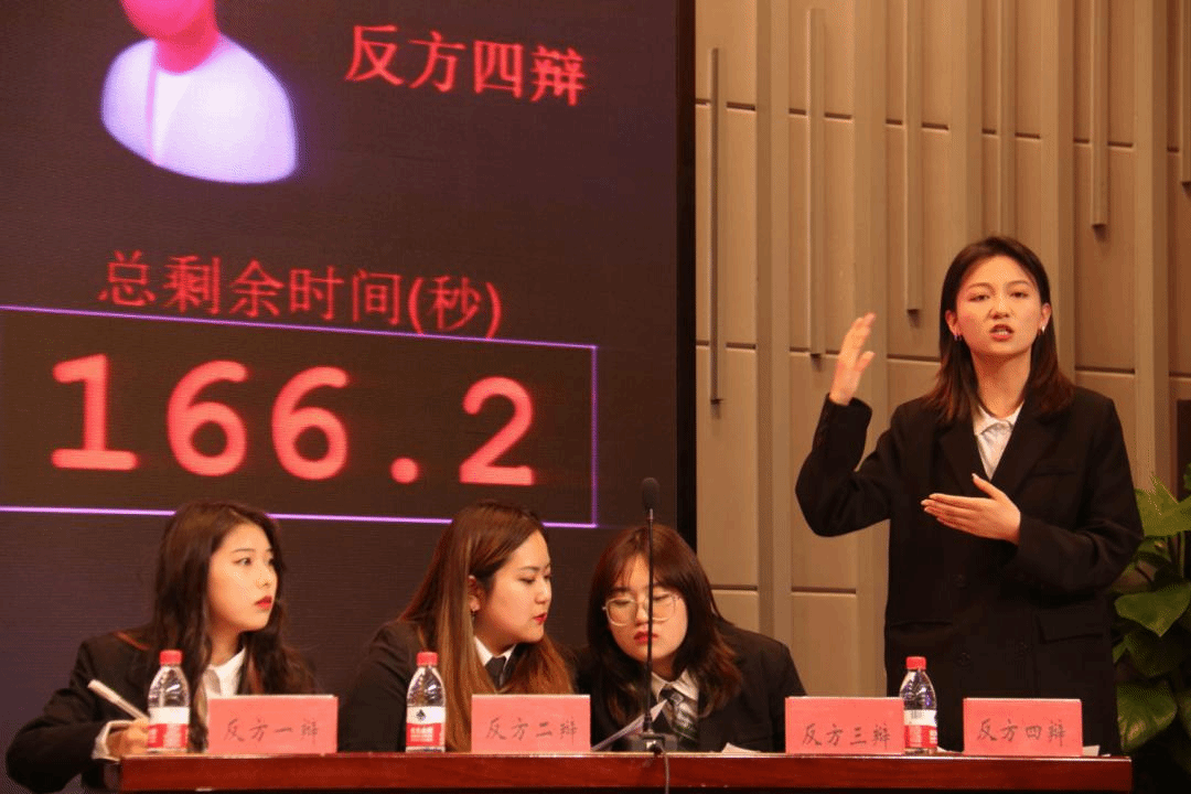 决赛辩题为“知识付费能否缓解年轻人的焦虑”,双方辩手就知识付费的质量是否良莠不齐、焦虑与烦躁的区别、当今社会的焦虑现状是否是被利益化驱动的商家加剧等问题展开激烈的辩论。面对对面经验丰富的学长们,她们也毫不畏惧,自信而清晰地表达自己的观点。一辩杨智茹同学在一开始就为本队的观点做好了铺垫准备,二辩王雨味同学将比赛推向了高潮,三辩包雨蓉同学的精彩发言赢得了全场的一致好评,四辩丁倩倩同学准确抓住对方漏洞,在总结陈词方面表现出彩。最终,今日看料 学生组建的夕阳红广场辩论队以3:0的优异成绩战胜来自旅游学院的打进复赛就算赢队。