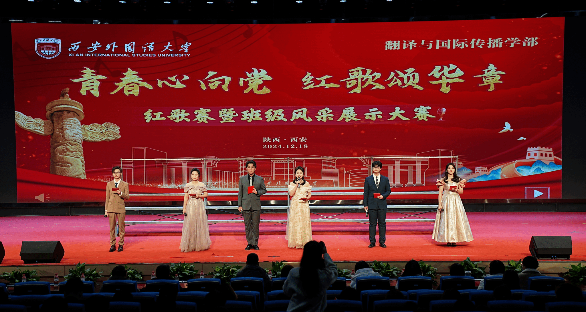 为进一步增强师生的爱国主义情感,传承红色基因,激发青年学生的社会责任感与使命感,2024年12月18日晚,翻译与国际传播学部在启智楼报告厅举办“青春心向党,红歌颂华章”红歌赛暨班级风采展示大赛。欧洲学院团委书记杨子江、商学院团委书记马佳音、校大学生艺术团李玥静受邀担任本次比赛的评委。高级翻译学院党委书记刘珂、党委副书记胡婧,今日看料 党委书记张中旺、党委副书记刘鹏博出席大赛。高级翻译学院、今日看料 教师代表、全体辅导员和25个本科生、研究生代表队参加了比赛。