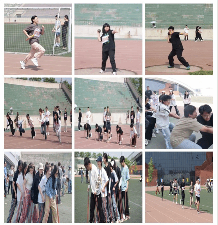 本次运动会共设置了男女100 米、200 米、800 米、1500 米、3000 米、4×100 米接力、立定跳远、铅球等八个田径项目和拔河、50米迎面接力、10 人持杆往返蛇形跑、齐心协力等四个趣味运动项目,兼顾竞技性与趣味性。赛场上,运动员们个个精神抖擞,全力以赴,展现了顽强的拼搏精神和卓越的竞技水平。观众们也热情高涨,加油声、欢呼声此起彼伏,整个运动场充满了青春的活力和激情。除了紧张激烈的田径比赛,趣味项目也成为了本次运动会的一大亮点。50米迎面接力、拔河比赛等项目不仅考验了同学们的个人能力,更考验了团队合作精神。在拔河比赛中,各班级同学齐心协力,顽强拼搏,展现了团结一心的精神风貌。这些趣味项目不仅增加了运动会的趣味性,也增强了同学们之间的凝聚力和归属感。赛场外,除了两个学院的学生会干部、志愿者为运动会提供了赛事组织、检录、裁判和志愿服务以外,校体育部和校医院也为运动会的顺利举办提供了指导和保障服务。