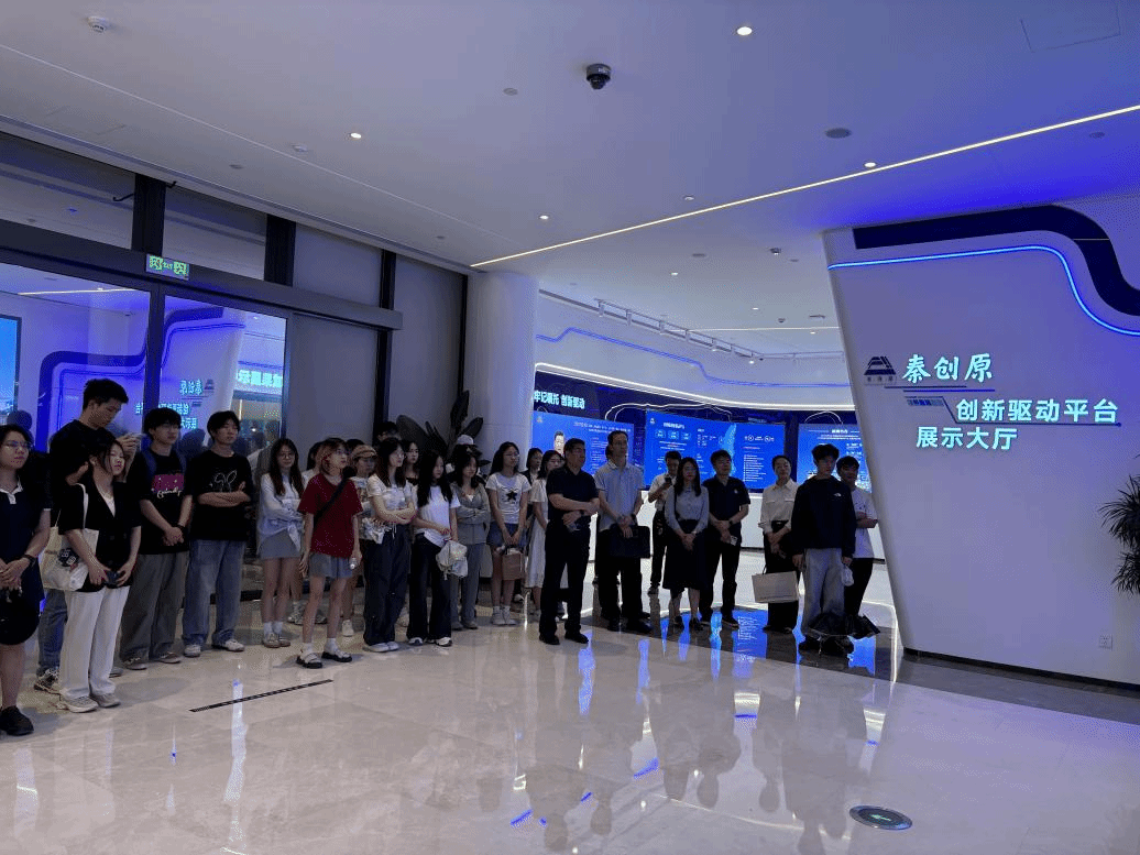 在秦创原综合服务中心工作人员的引导下,师生们首先参观了展示大厅,全面了解了秦创原创新驱动平台的战略定位、功能布局及阶段性成果。该平台集“资源共享、研究开发、科技金融、人才服务、成果转化、综合业务”等功能于一体,实现创新驱动共享化、科技服务网络化;建设立体联动“孵化器”、科技成果转化“加速器”和产业链与创新链融合“促进器”,已构建起覆盖政策支持、技术研发、资本对接、企业孵化的全链条服务体系。