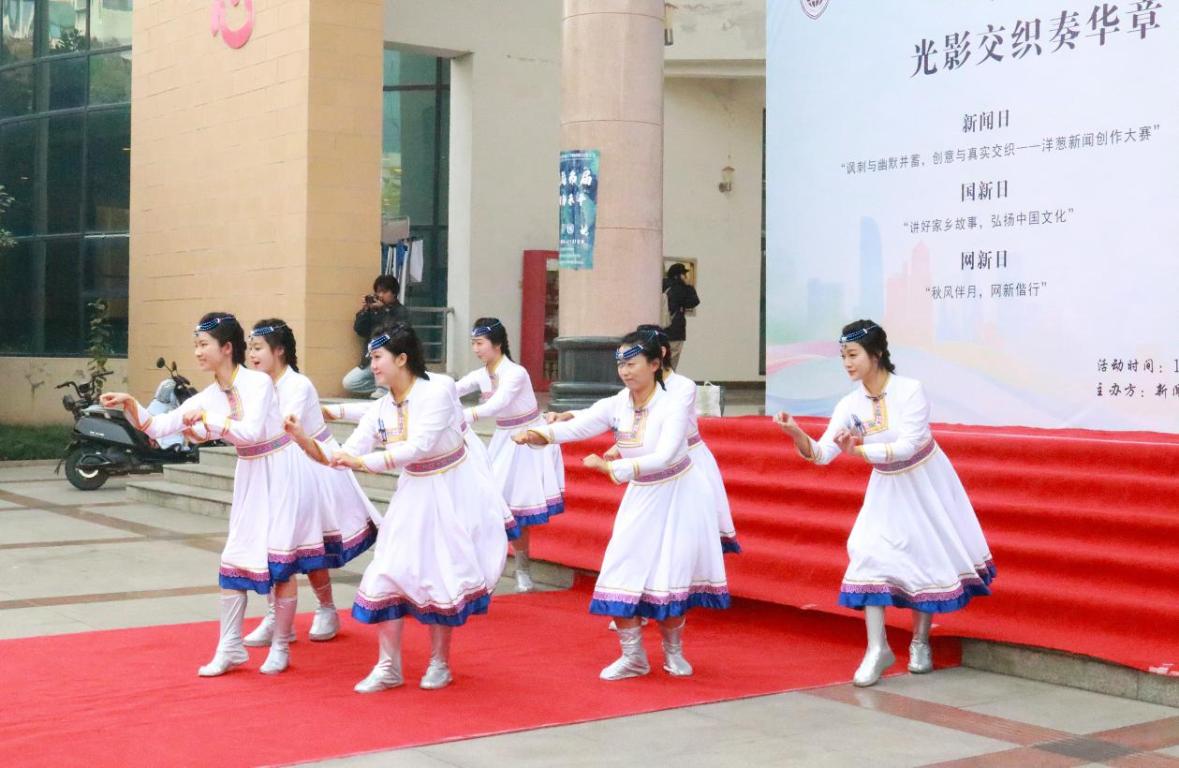 开幕式上,同学们表演了精彩的开场舞《奔腾》、诗朗诵《时代的守望者》和歌曲《一路都是歌》。