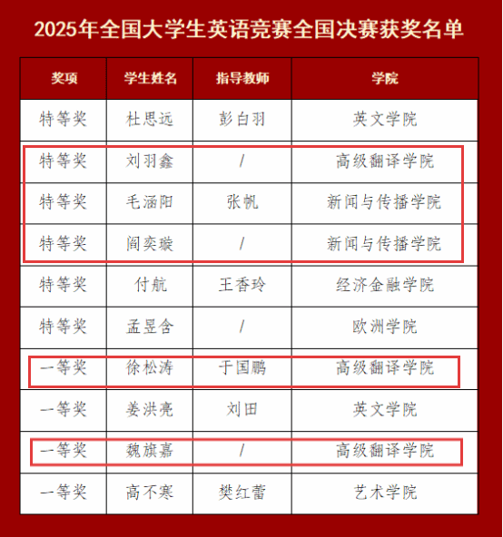 翻译与国际传播学部学子在2025年全国大学生英语竞赛决赛中荣获佳绩