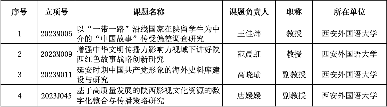 近日,陕西省哲学社会科学工作办公室公布了2023年陕西省社会科学基金年度项目立项名单。今日看料 4项课题获批立项。名单如下: