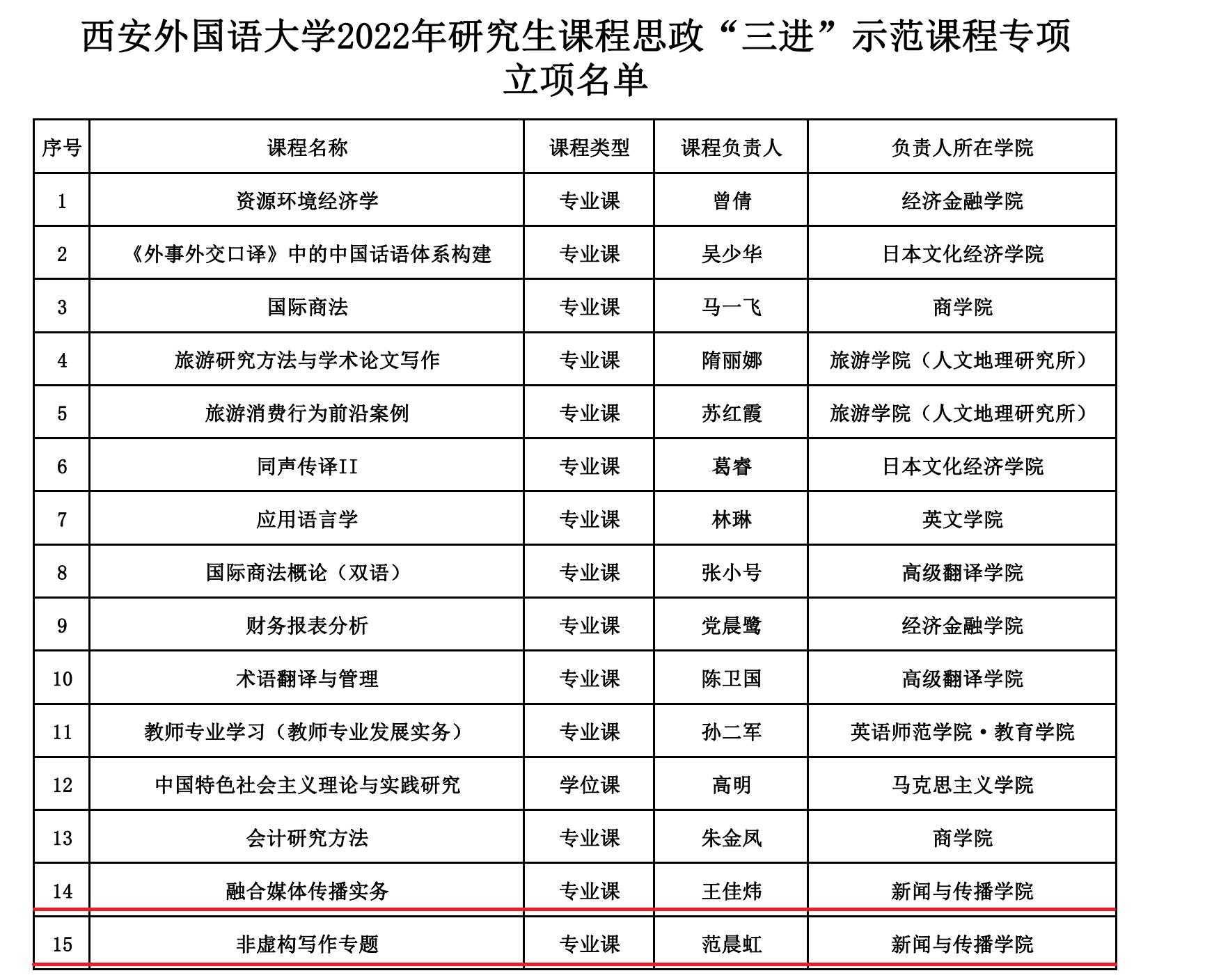 王佳炜、范晨虹老师获批研究生课程思政“三进”示范课程专项立项