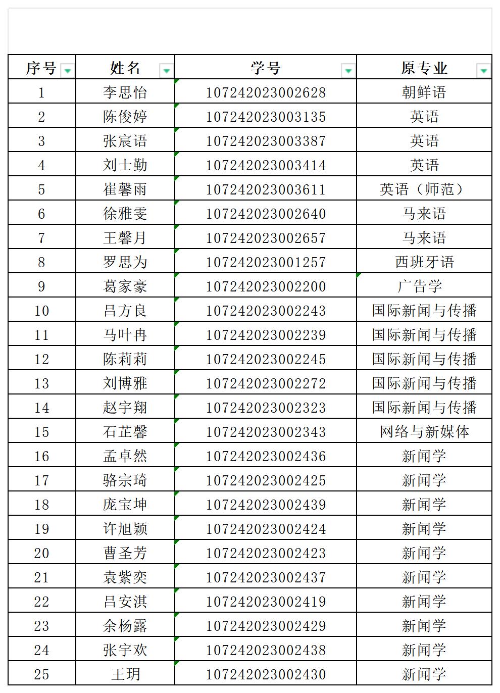 经学生个人申报、学院笔试、面试考核、专业教师联合评审、党政联席会议讨论通过,拟录取以下25名同学进入卓越新闻传播人才实验班学习。