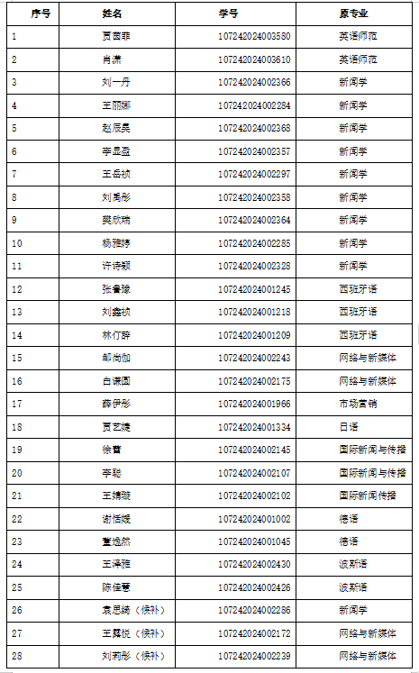 经学生个人申报、学院笔试、面试考核、专业教师联合评审、党政联席会议讨论通过,拟录取以下25名同学进入卓越新闻传播人才实验班学习。