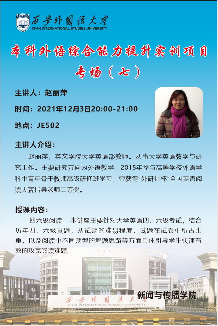 XISU新传·讲座预告 | 本科外语综合能力提升实训项目专场(七)