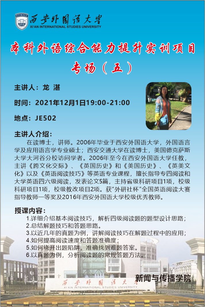 XISU新传·讲座预告 | 本科外语综合能力提升实训项目专场(五)