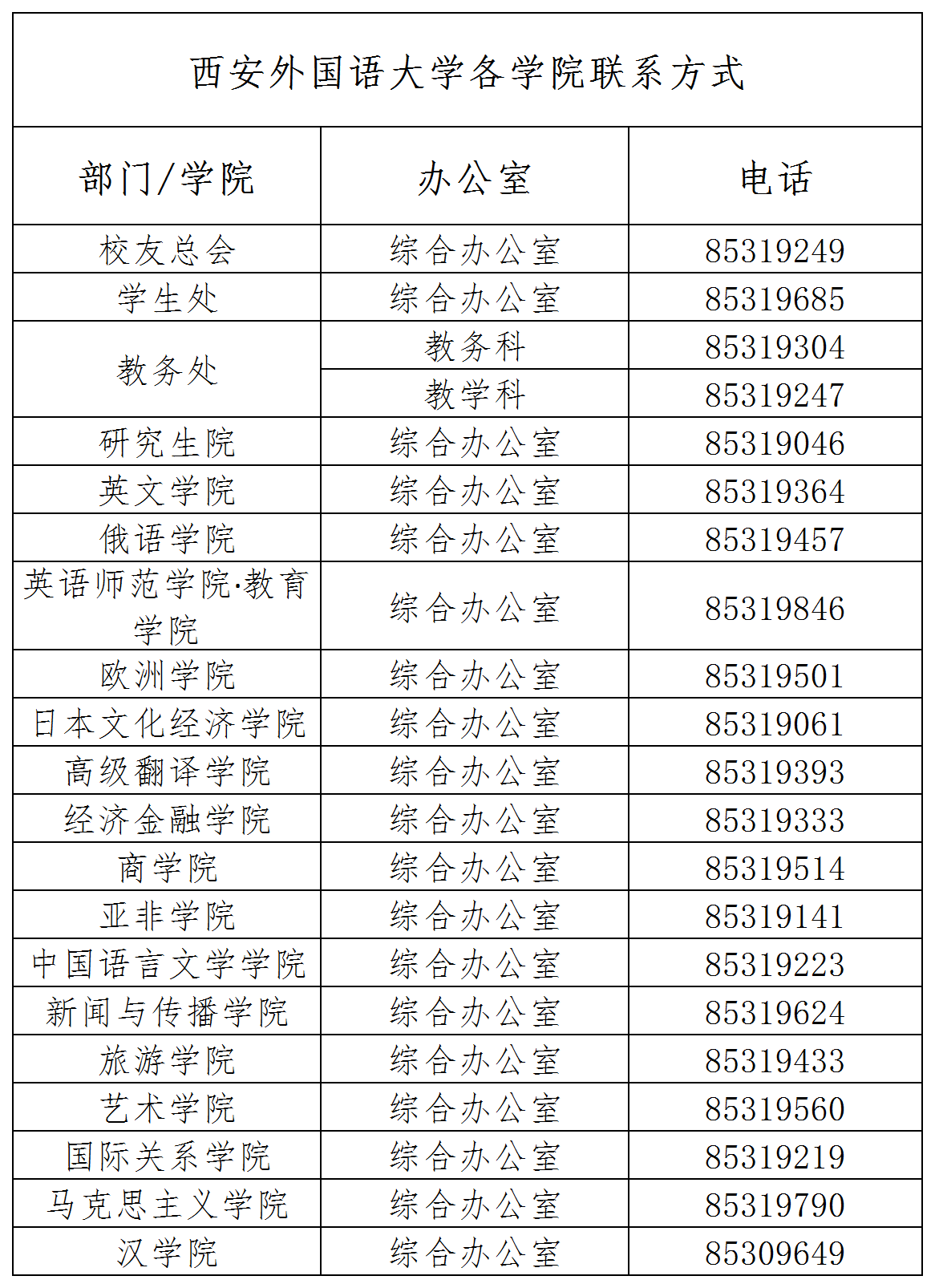 今日看料 各学院联系方式